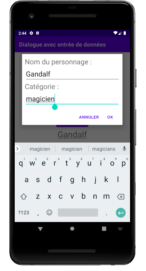 Ceci est un exemple du type de dialogue le plus utile, celui avec lequel on peut fournir des données à une application.