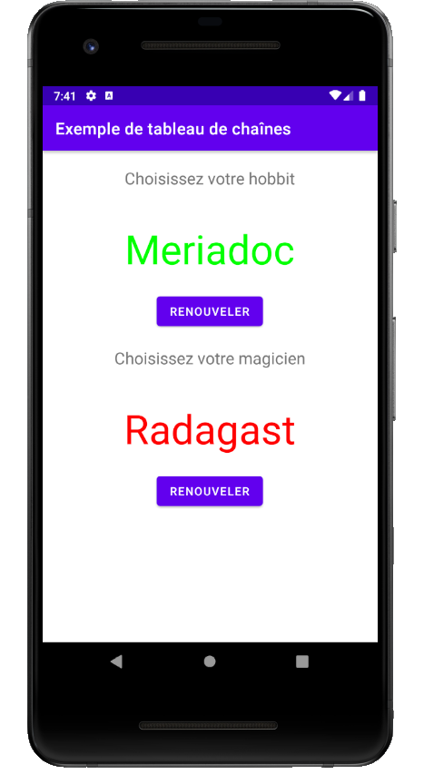 Cet exemple montre comment regrouper les chaînes de caractères du fichier "strings.xml" à l'intérieur de tableaux et en récupérer le contenu depuis le code Java de l'activité.