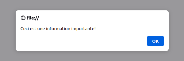 On peut facilement afficher n'importe quelle information à l'aide d'une boîte de dialogue d'alerte message grâce à la méthode window.alert().