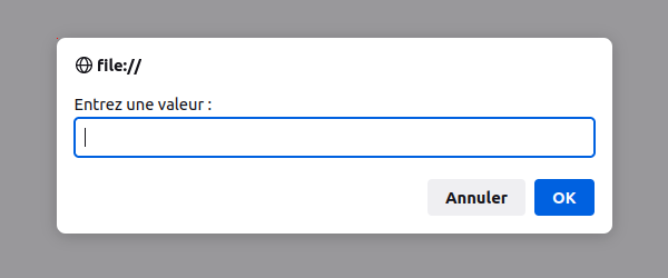 La méthode window.prompt() affiche une boîte de dialogue pour inviter l'utilisateur à entrer du texte.